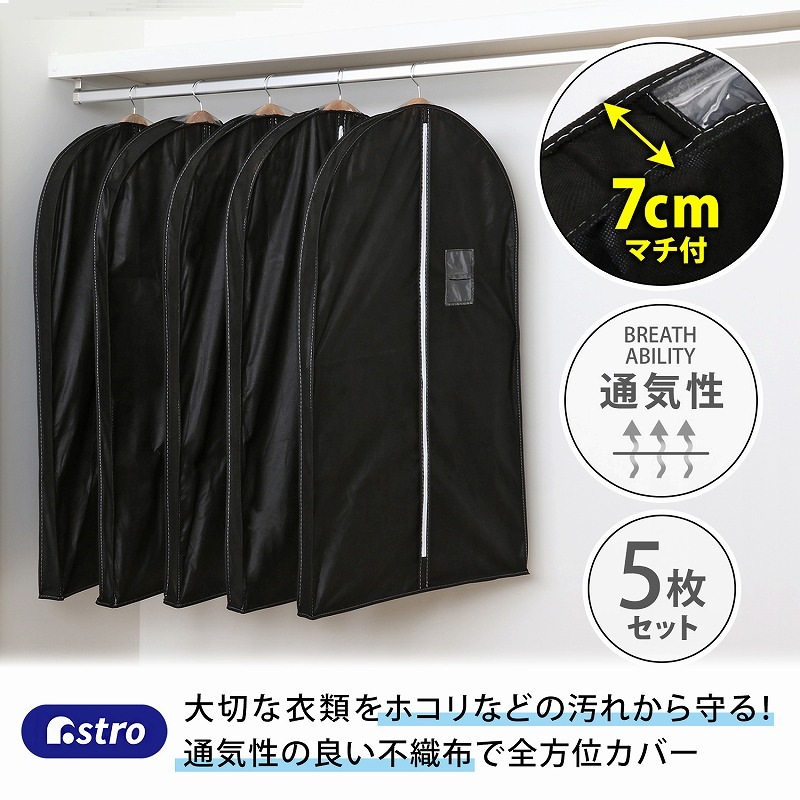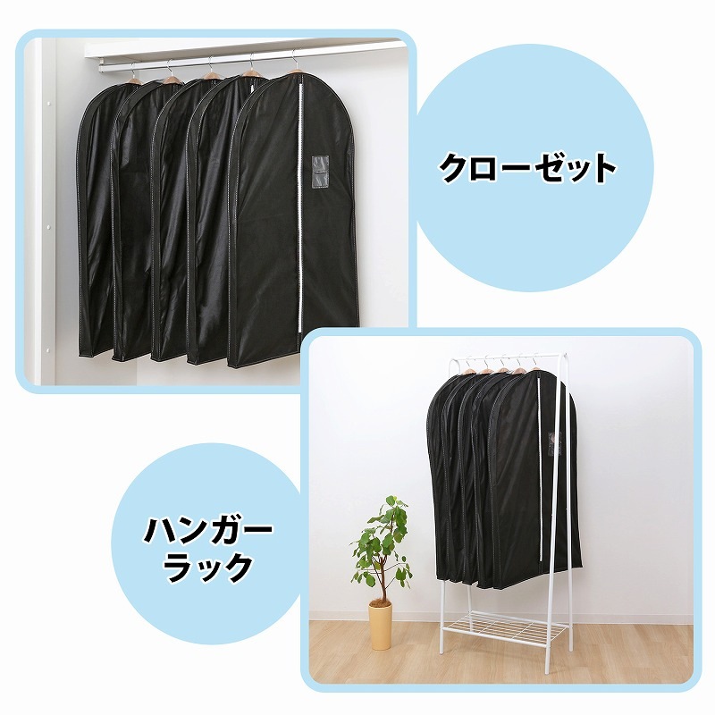 【大感謝祭MAX20%OFF】マチ付スーツ用カバーブラック5枚組 110-45
