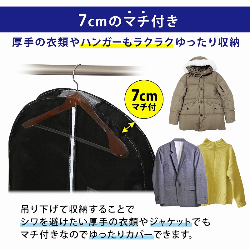 ●マチ付きなので厚手のものやシルエットが気になるフォーマルなどの収納に最適。