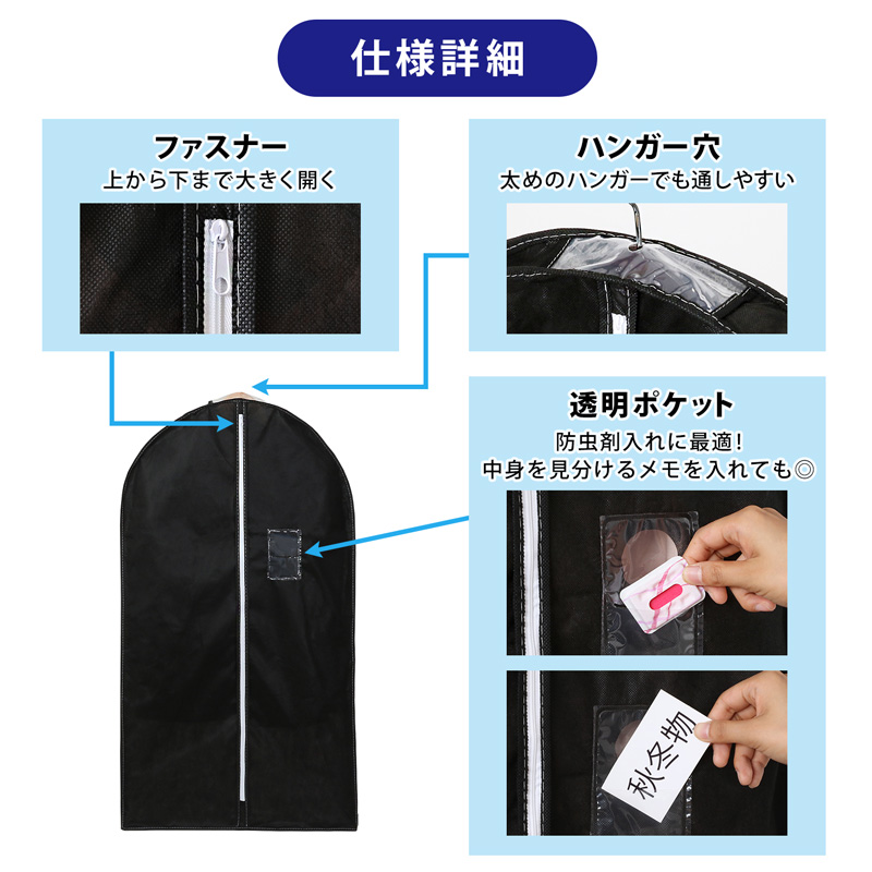●通気性に優れた不織布製。湿気やホコリから大切な衣類を守ります。