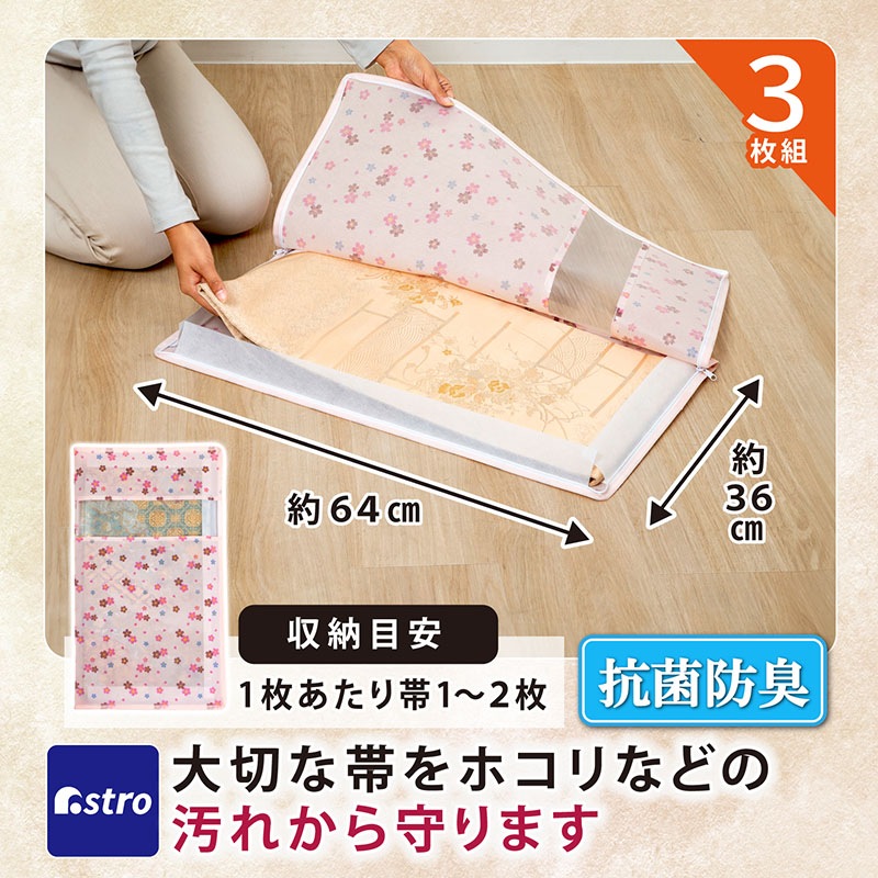 - 商品名:抗菌防臭 帯収納袋 さくら柄 3枚組