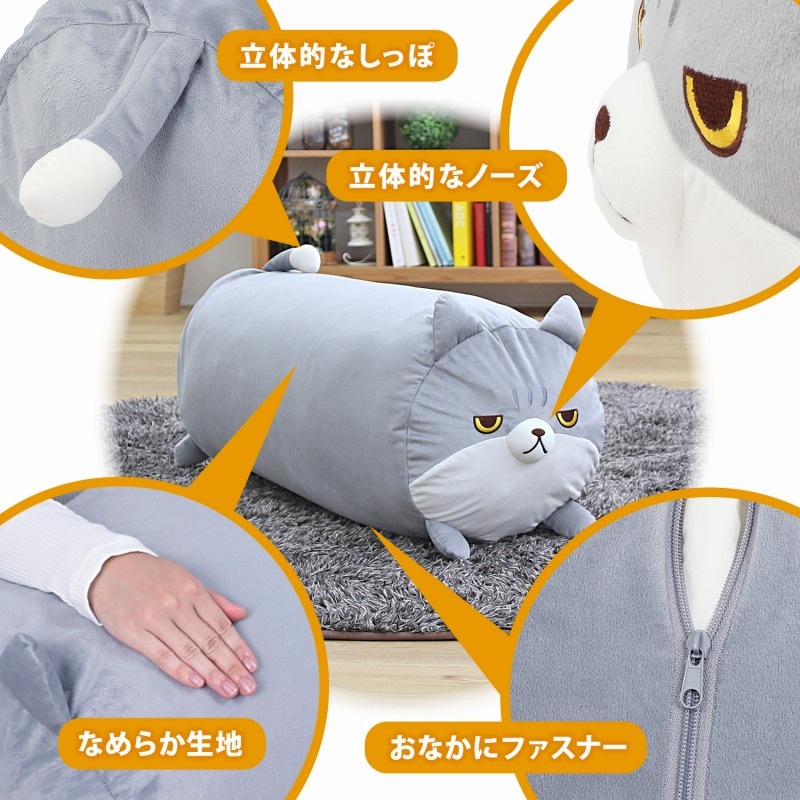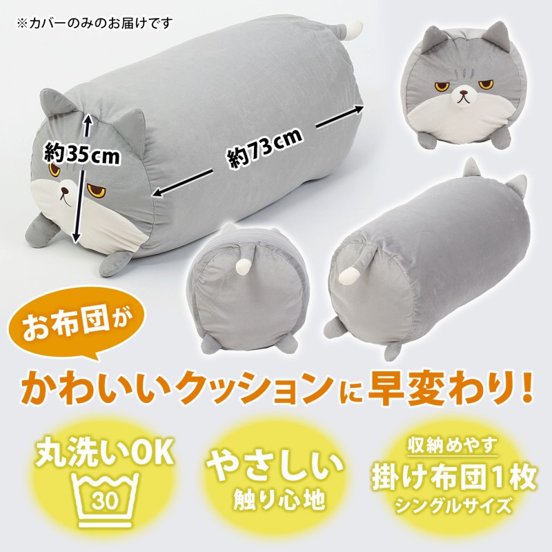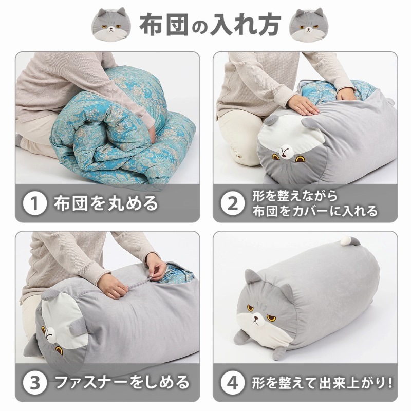 ●羽毛布団や毛布、タオルケットなどを入れるとかわいいネコのクッションに。