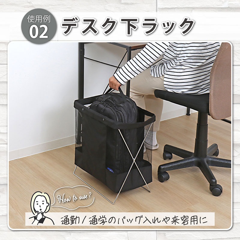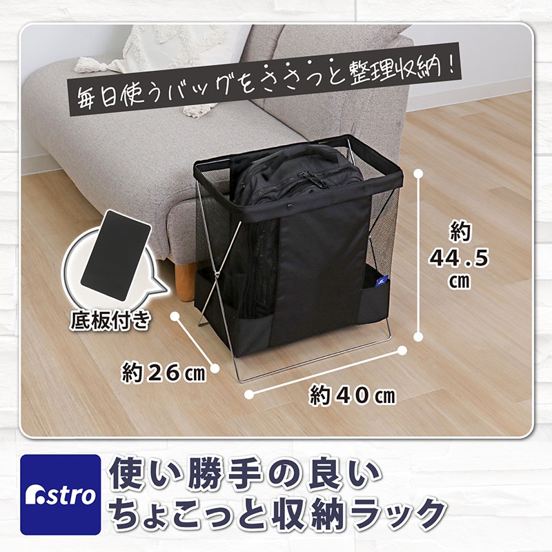 ●フタがないのでサッと入れることができ、メッシュ生地からほどよく中身が見えて探す手間も省ける。