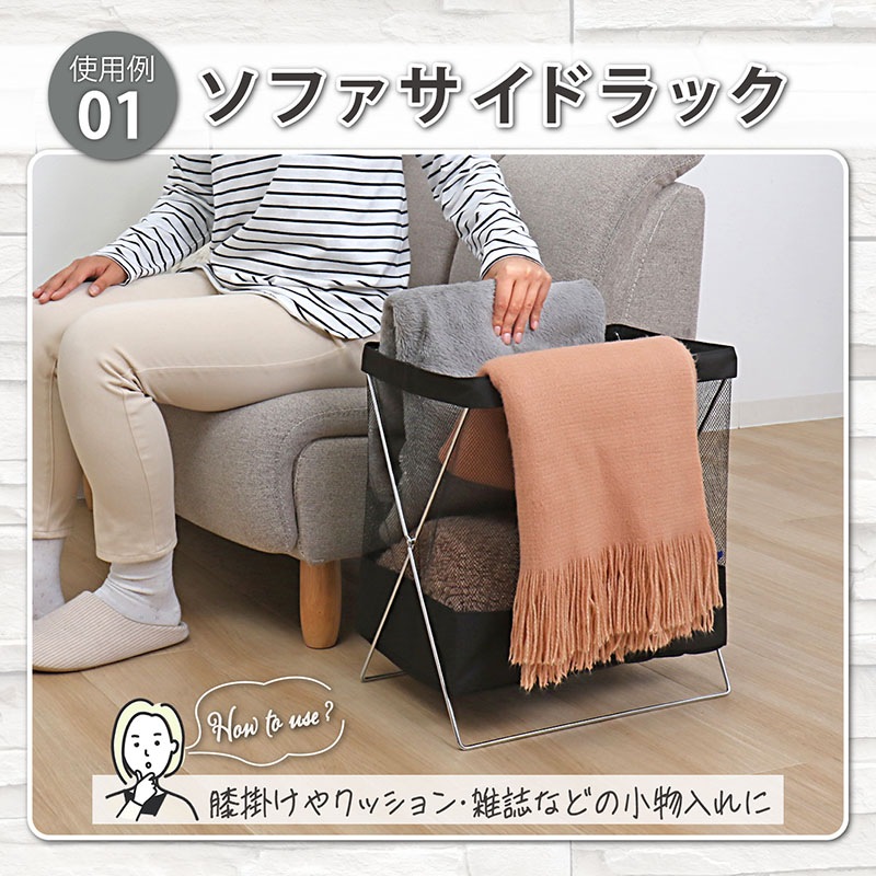 ●ブランケット、雑誌、新聞、ぬいぐるみなどを入れたり、玄関先でのスリッパ入れとしてもオススメ。