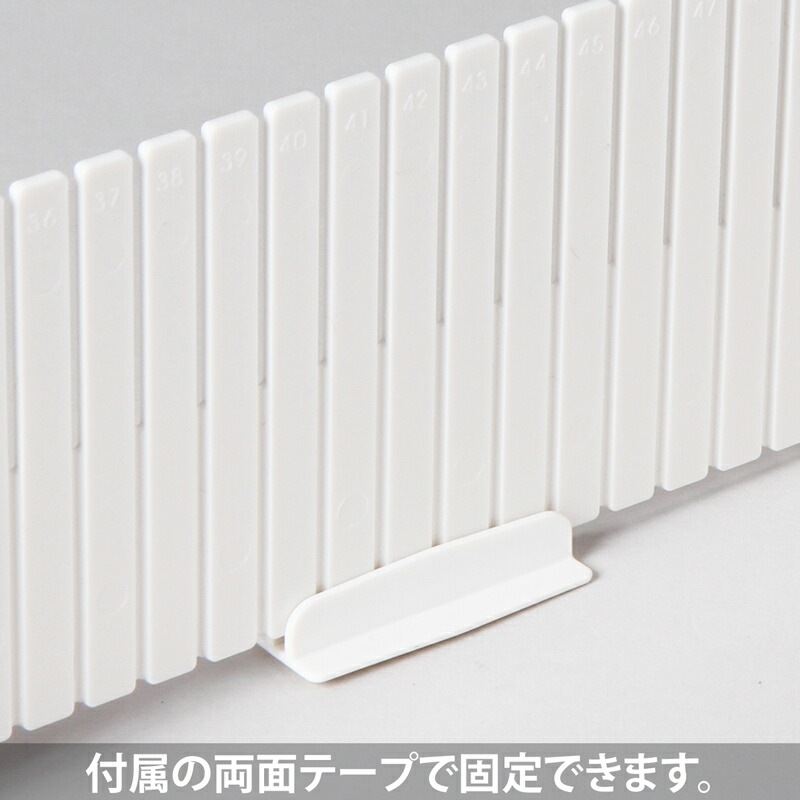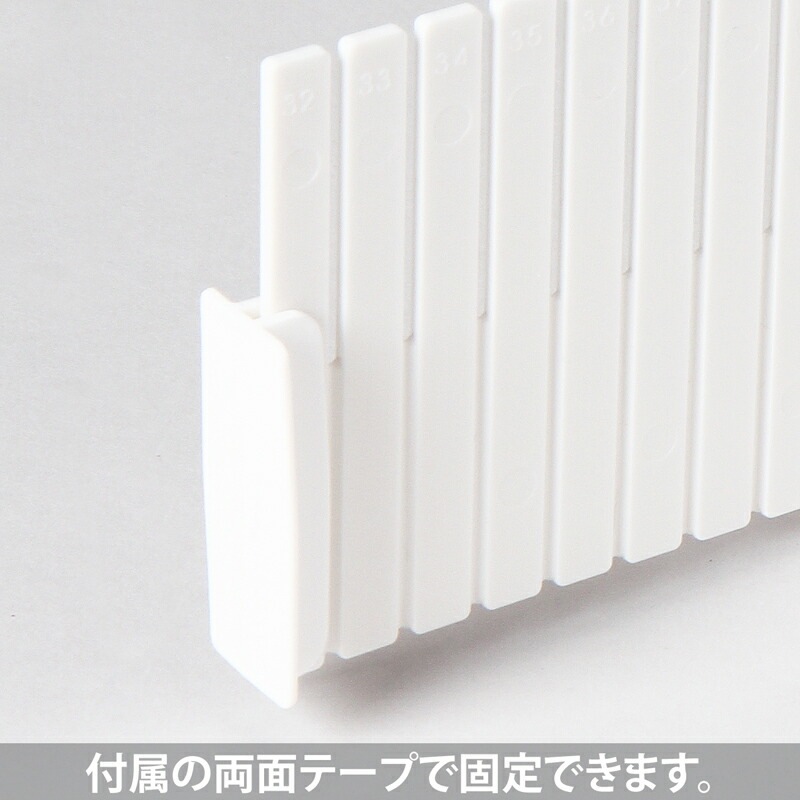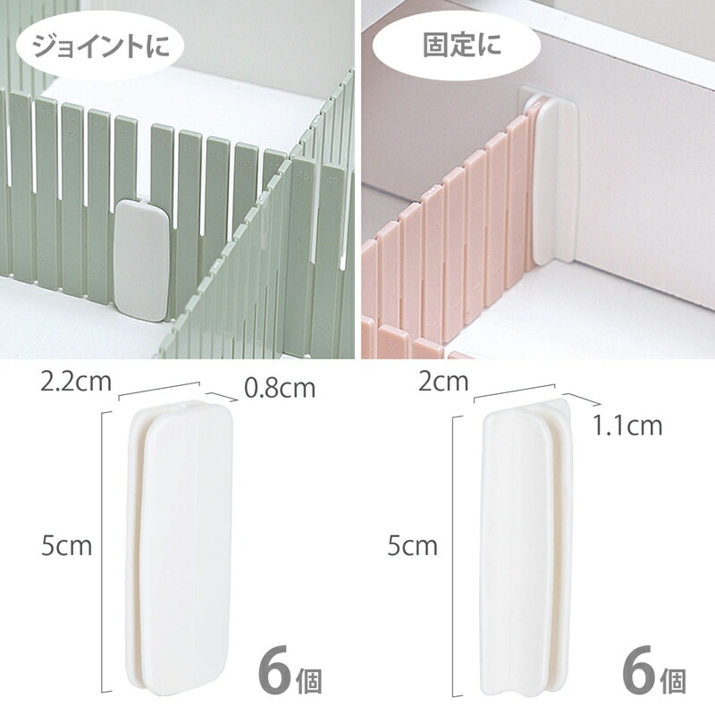 ●固定パーツを仕切り板の端と端につけることで、引き出し内などで仕切り板がズレたり動くのを防止。