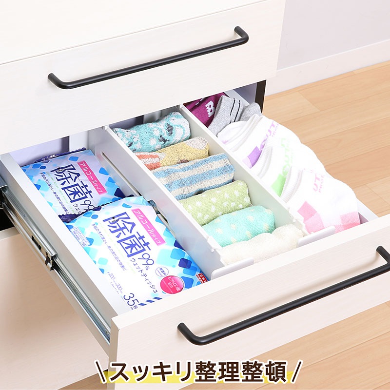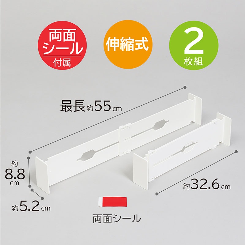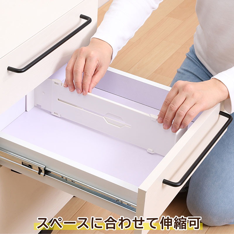 ●入れるスペースに合わせて長さを変えることのできる伸縮式の仕切り板。