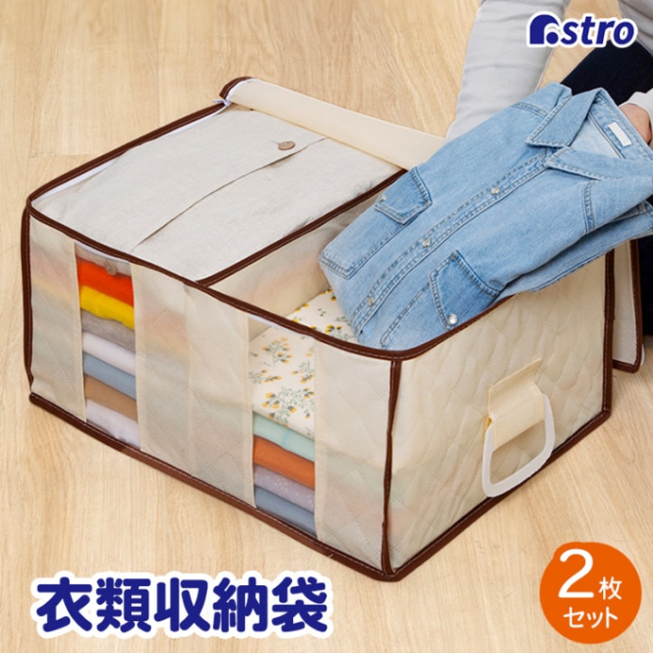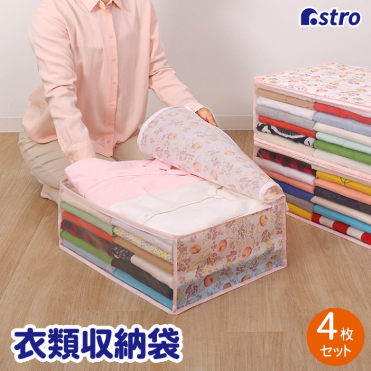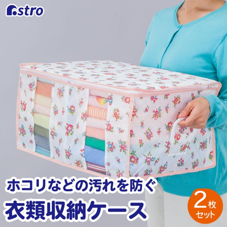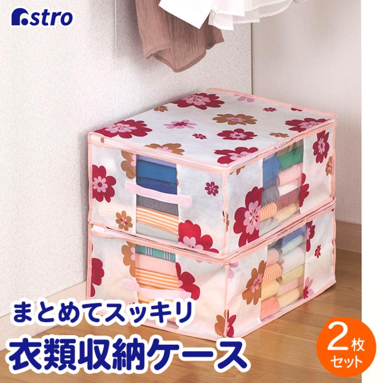 抗菌防臭ハンドル付衣類収納袋フラワーデュエット2P618-57
