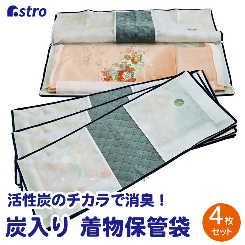着物保管ケース シンプルグレー 保管袋5枚付き 173-04