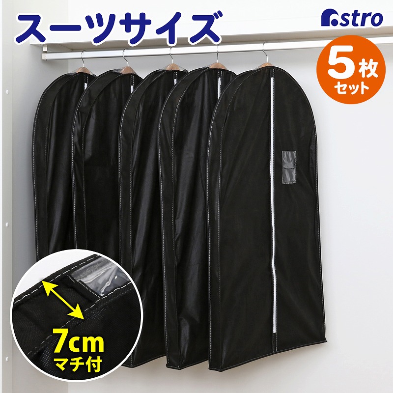 【大感謝祭MAX20%OFF】マチ付スーツ用カバーブラック5枚組 110-45