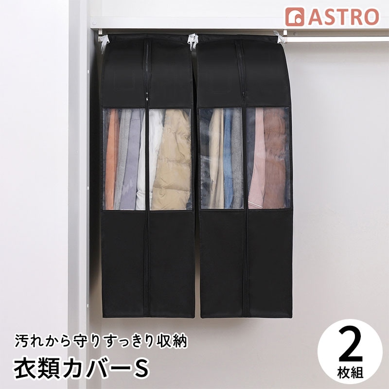 【大感謝祭MAX20%OFF】クローゼット衣類カバー S ブラック 2枚組 600-28