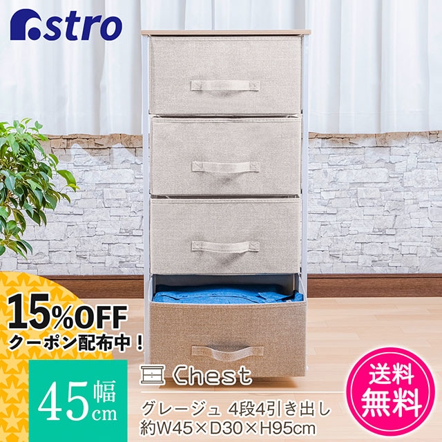 布張りチェスト 4段 イエロー 5L-103-YE 310-23