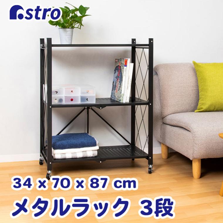 【大感謝祭MAX20%OFF】折りたたみラック 3段 黒 731-13