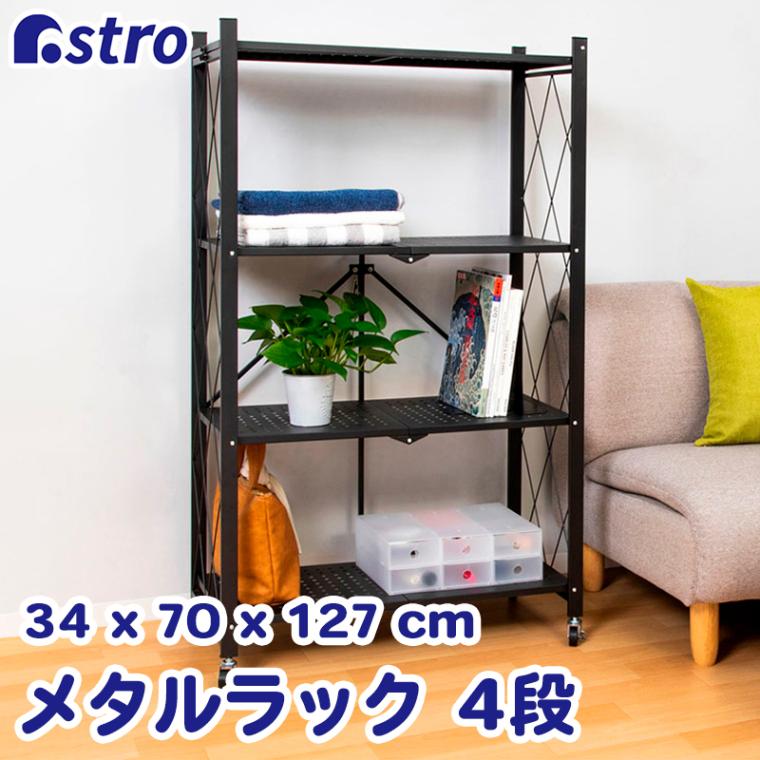 【大感謝祭MAX20%OFF】折りたたみラック 4段 黒 731-14