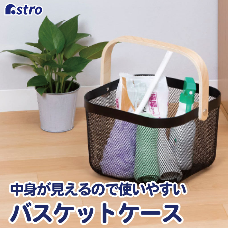 訳あり ワイヤーバスケット 木製持ち手 ブラック 822-86