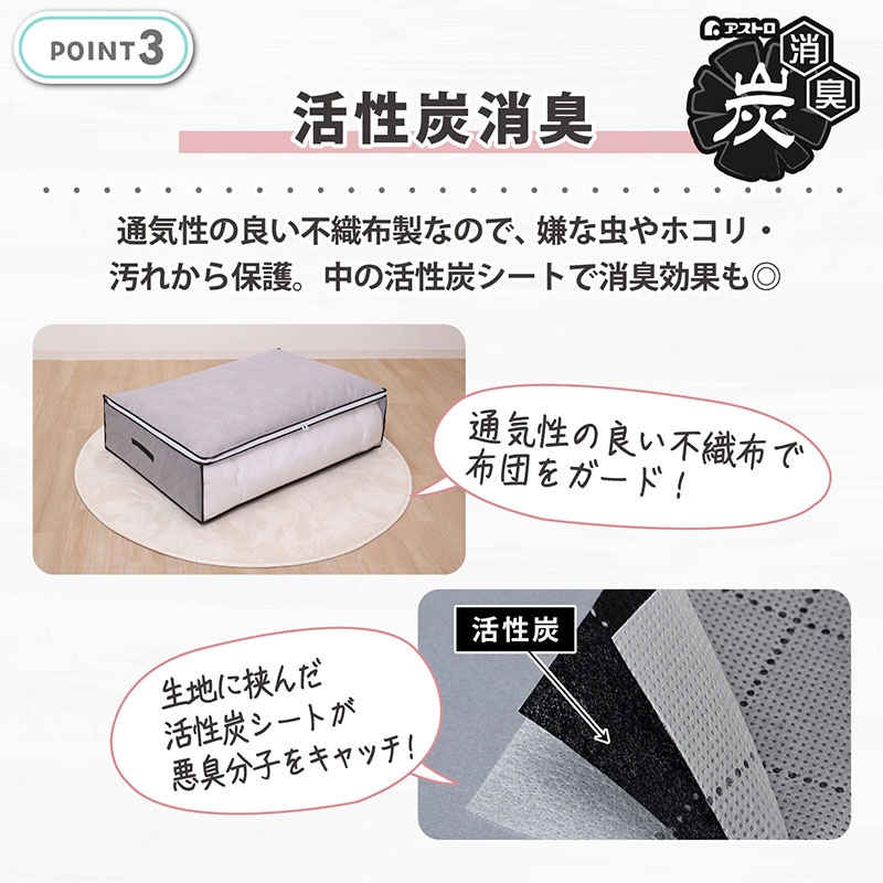 【大感謝祭MAX20%OFF】活性炭羽毛布団を薄くしまえるケース 3個組 171-82