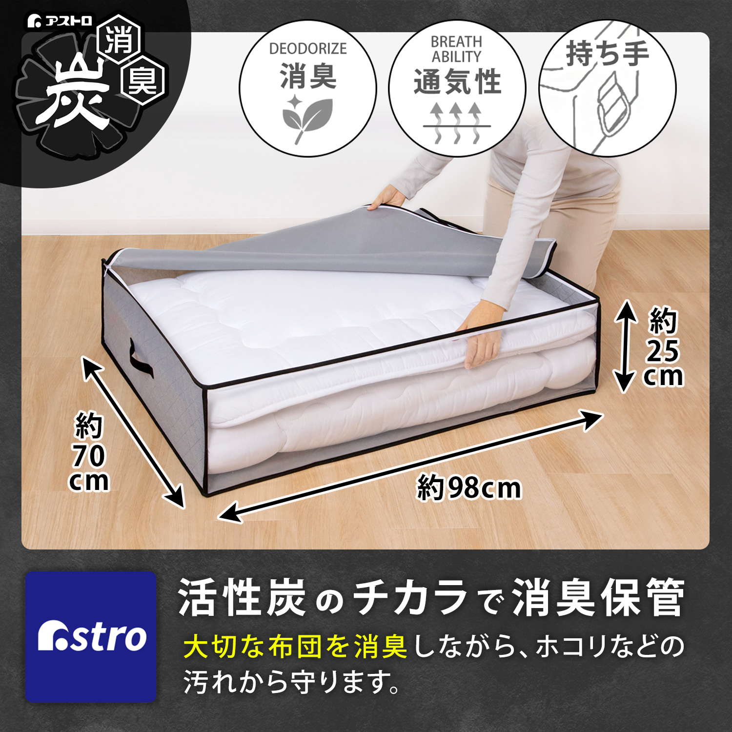 【大感謝祭MAX20%OFF】活性炭薄型羽毛布団保存ケース 171-05
