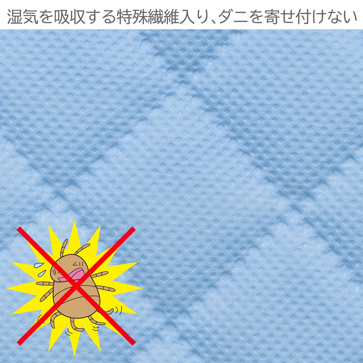 ●湿気を吸収する特殊繊維入りで、吸湿することでダニの繁殖を抑制しダニを寄せ付けない。