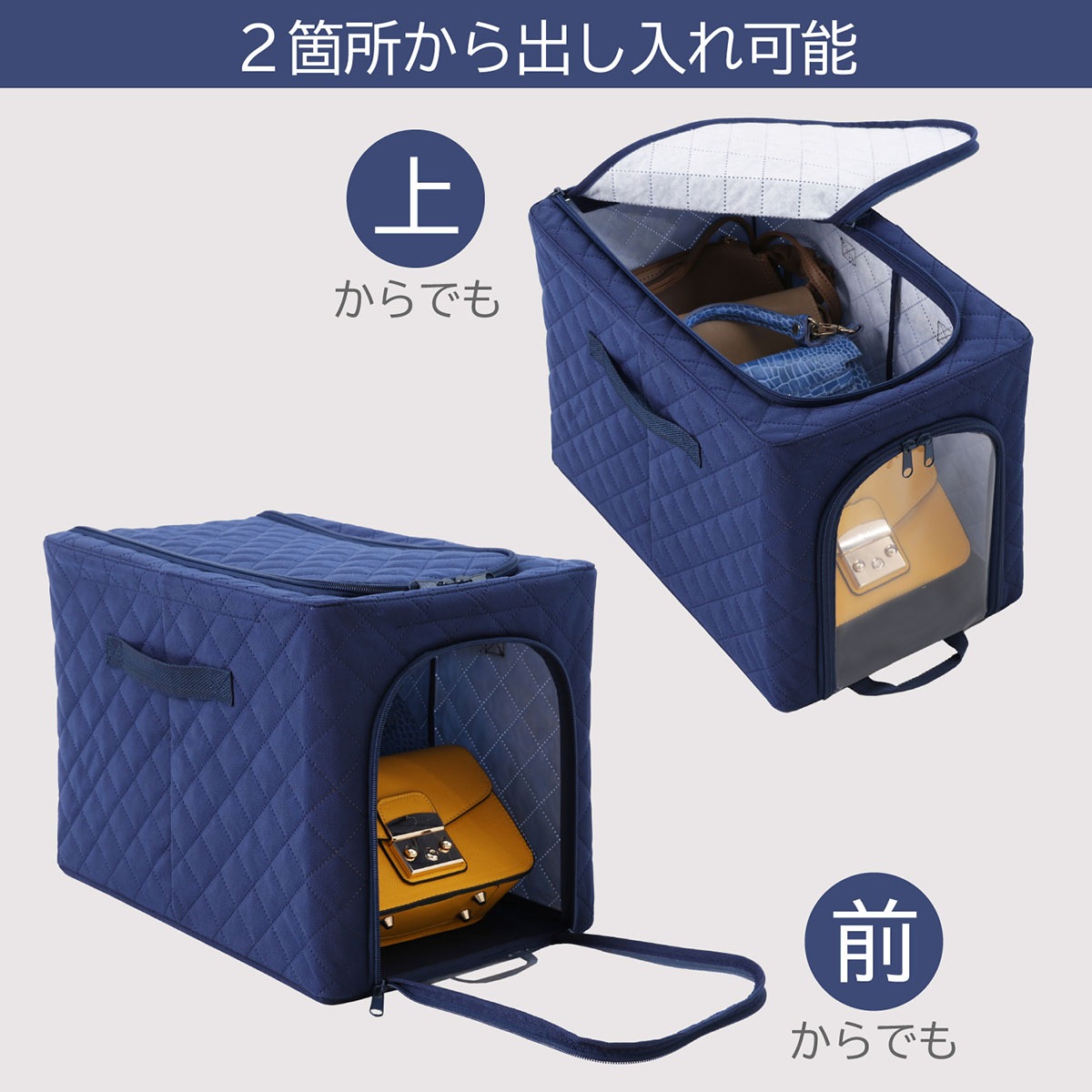 商品名:ドライ&ドライ吸湿防ダニワイヤーケース紺小2個組