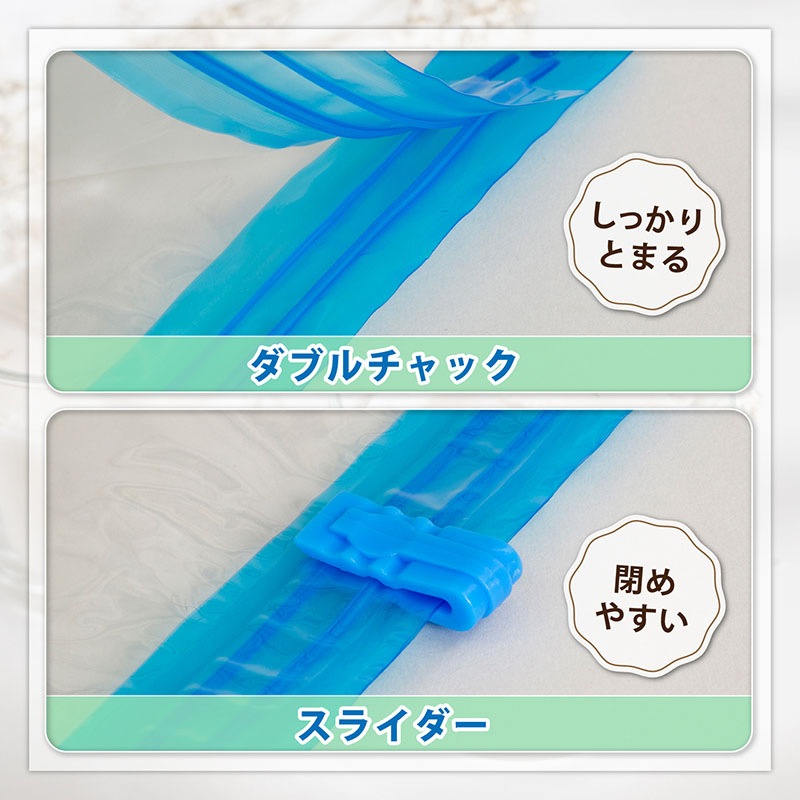 ●空気漏れを防ぐ二重チャック構造+専用スライダー付き。