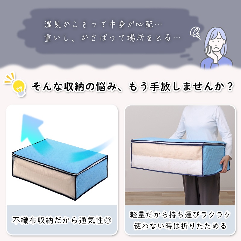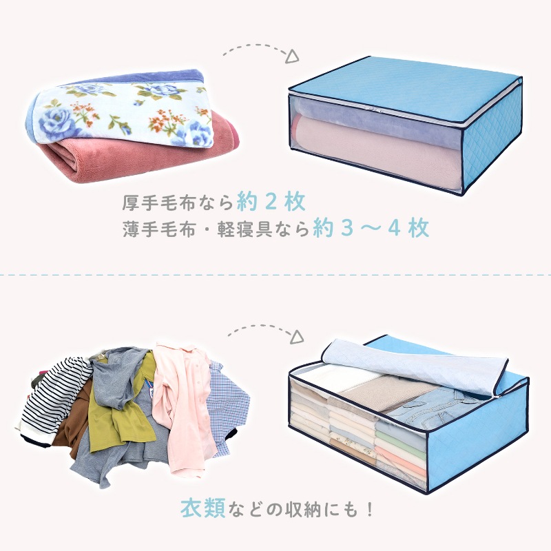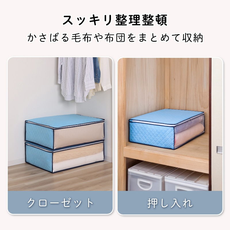 ●通気性の良い不織布で、オフシーズンや来客用の毛布を湿気やホコリから守り大切に保管。