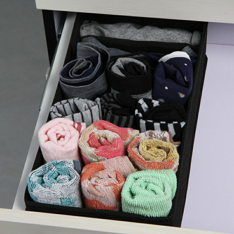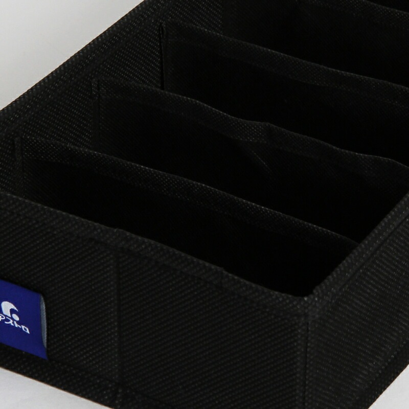 ●通気性の良い不織布でできた下着類や靴下が整理できる仕切り入りの収納ケース。