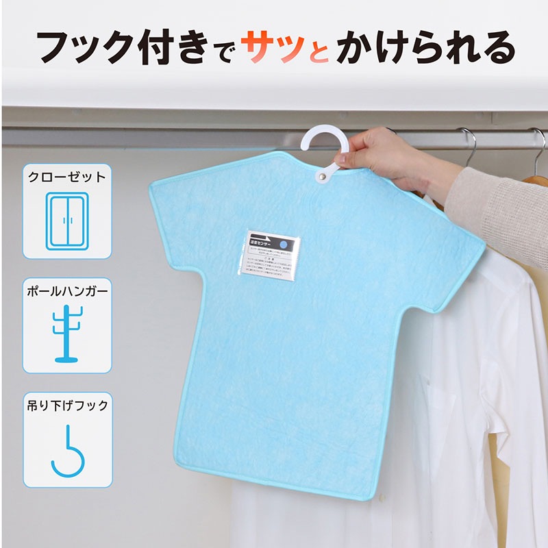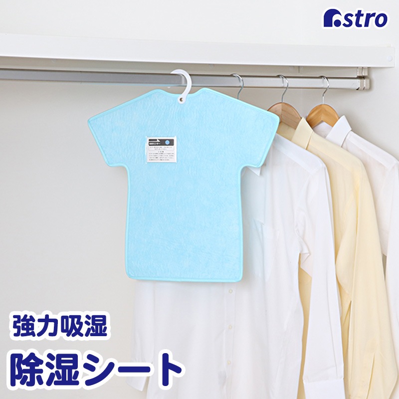 ●シリカゲルの約2~3倍の吸湿効果がある素材を使用したシート。クローゼットやハンガーに掛けてぐんぐん除湿。
