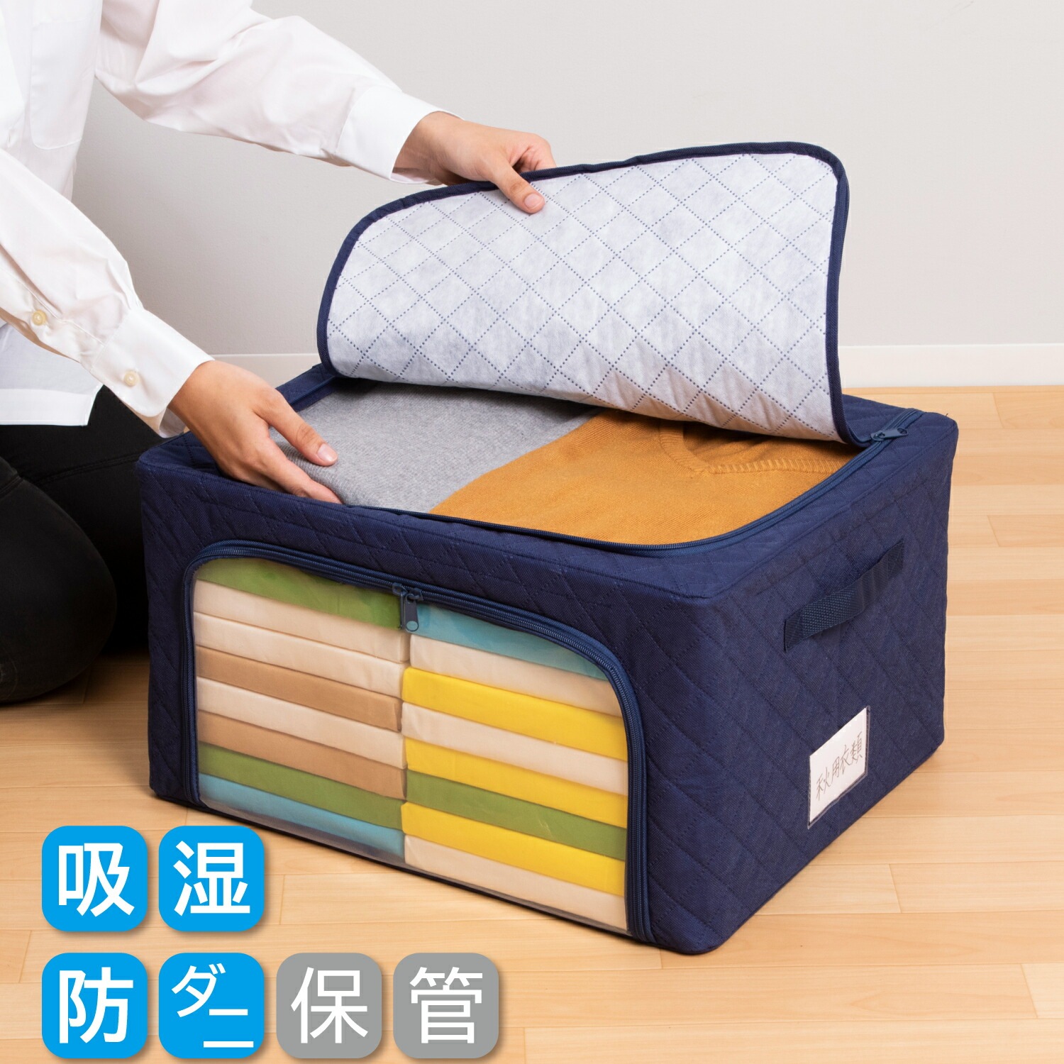 商品名:ドライ&ドライ吸湿防ダニワイヤーケース紺大