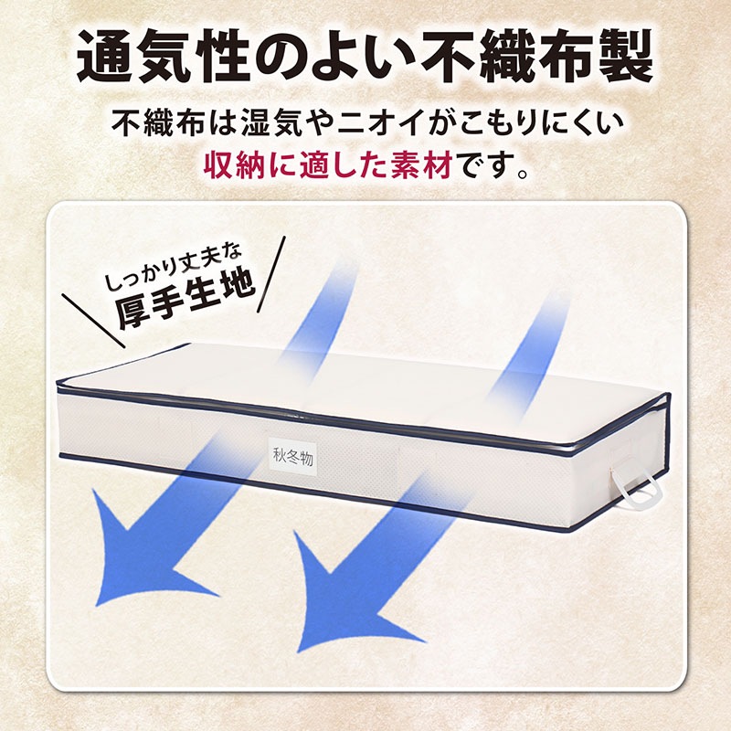 ●通気性が良く湿気やにおいのこもりにくい不織布製。オフシーズンの衣類などの保管に。