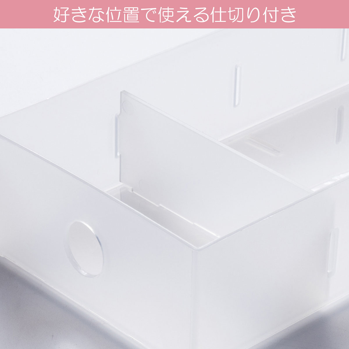 ●各引き出しに好きな位置に動かせる仕切り付きで整頓しやすい。