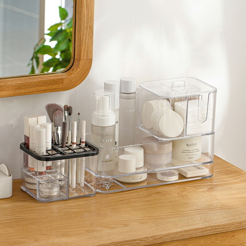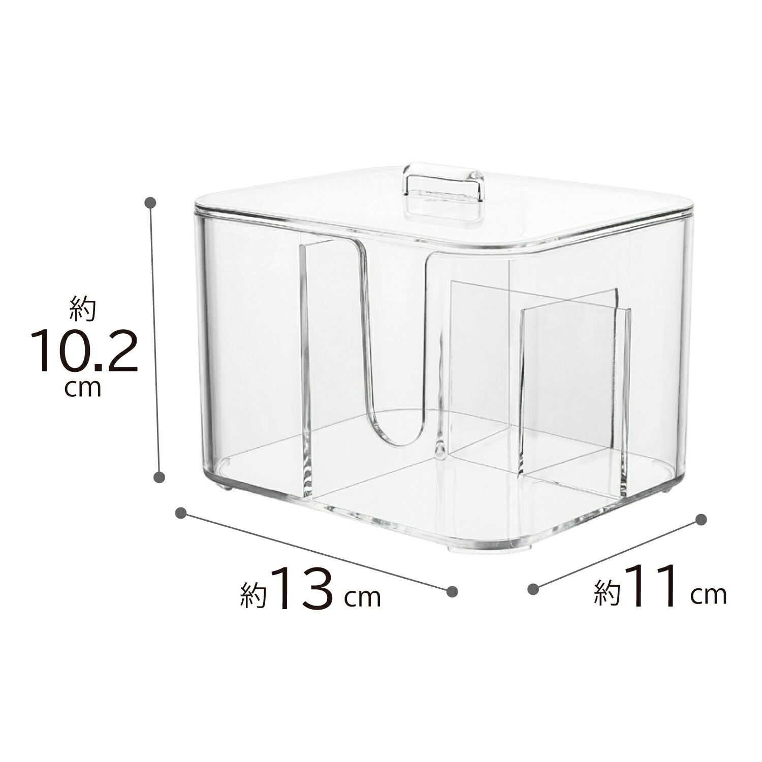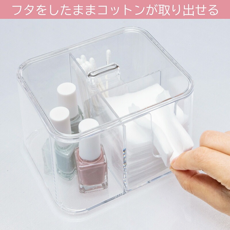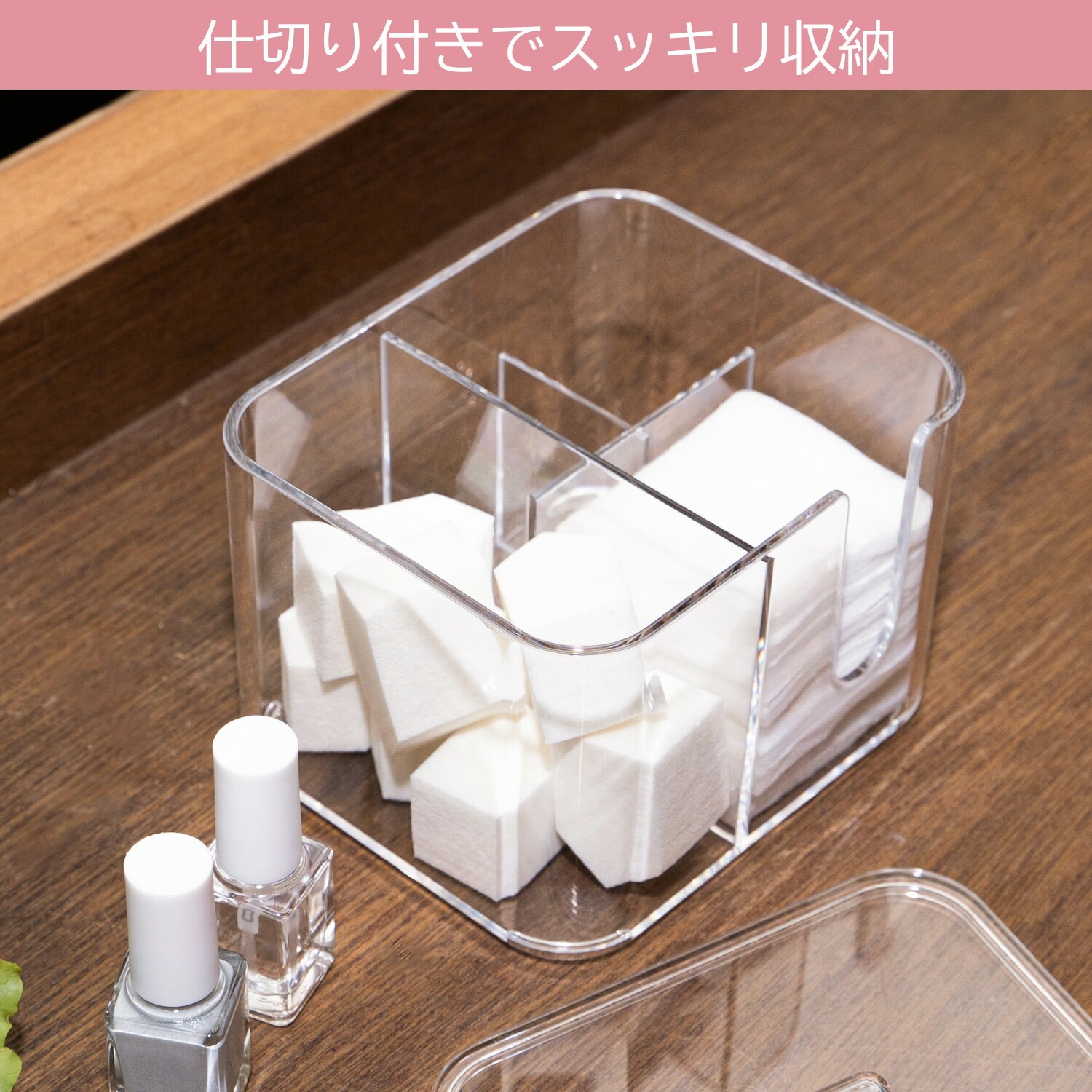 ●メイク用コットンパフや、綿棒などの収納に便利なクリア収納ケース。