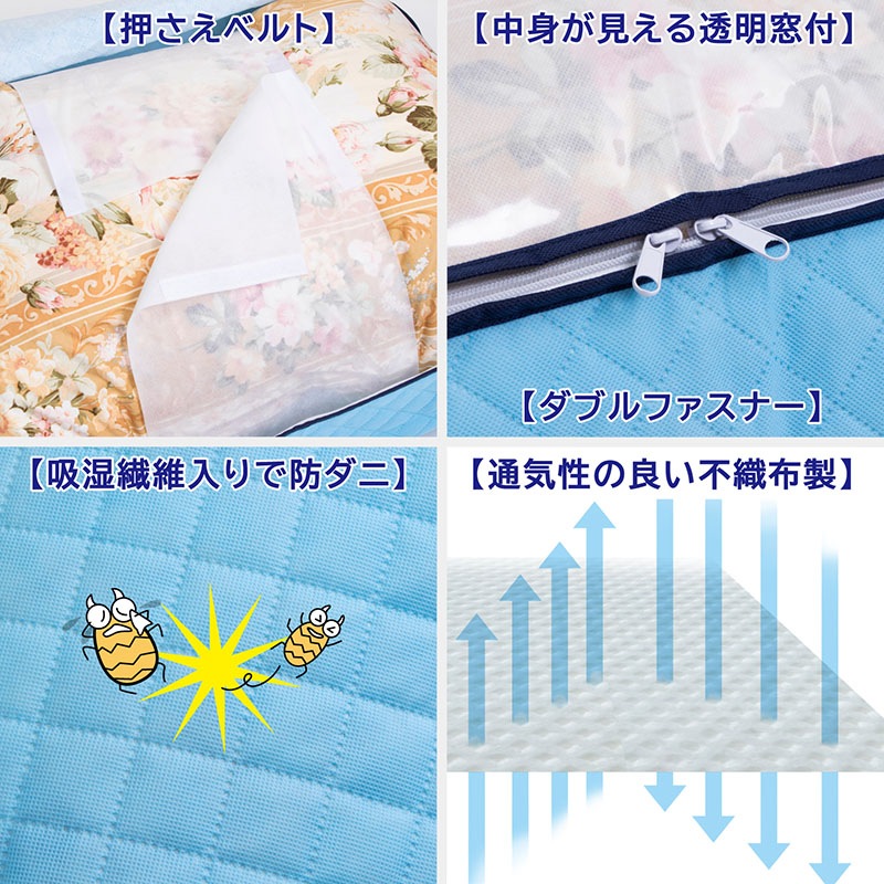 ●通気性の良い不織布で、オフシーズンや来客用の羽毛布団をホコリから守る。