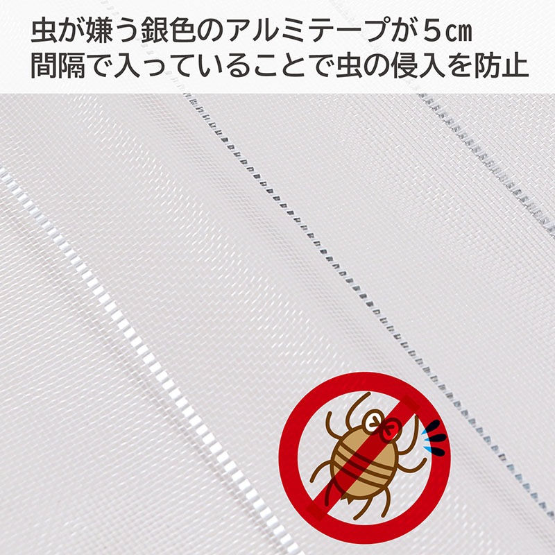 ●虫が嫌う銀色のアルミテープが5cm間隔で入っていることで虫の侵入を防止。