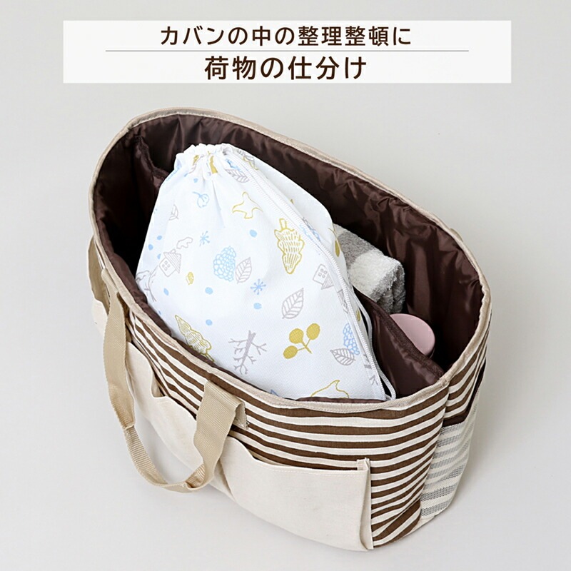 ●かわいい北欧柄。お子さまの着替えやタオル、お泊りグッズの持ち運びなどにも。