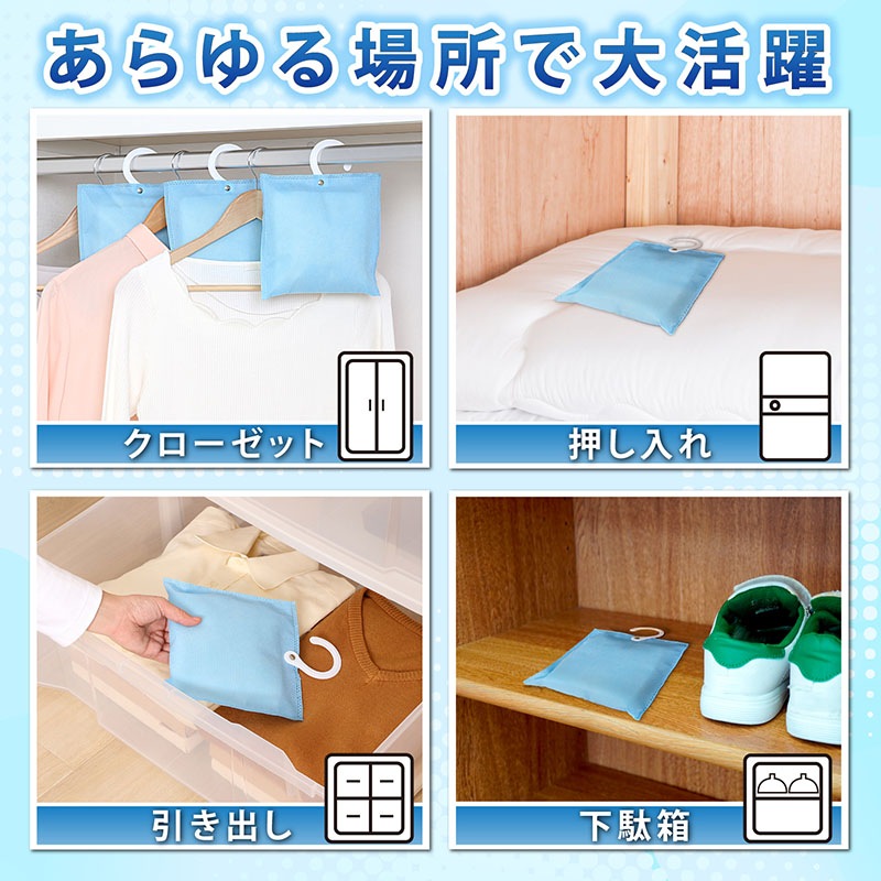 ●湿気が気になるところに吊り下げたり、置いておくだけでしっかり除湿。