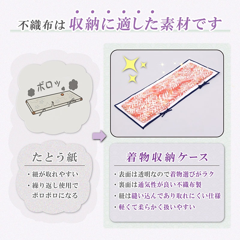 ●後ろは前面不織布を使用。通気性が良いから風を通し着物を湿気から守る。