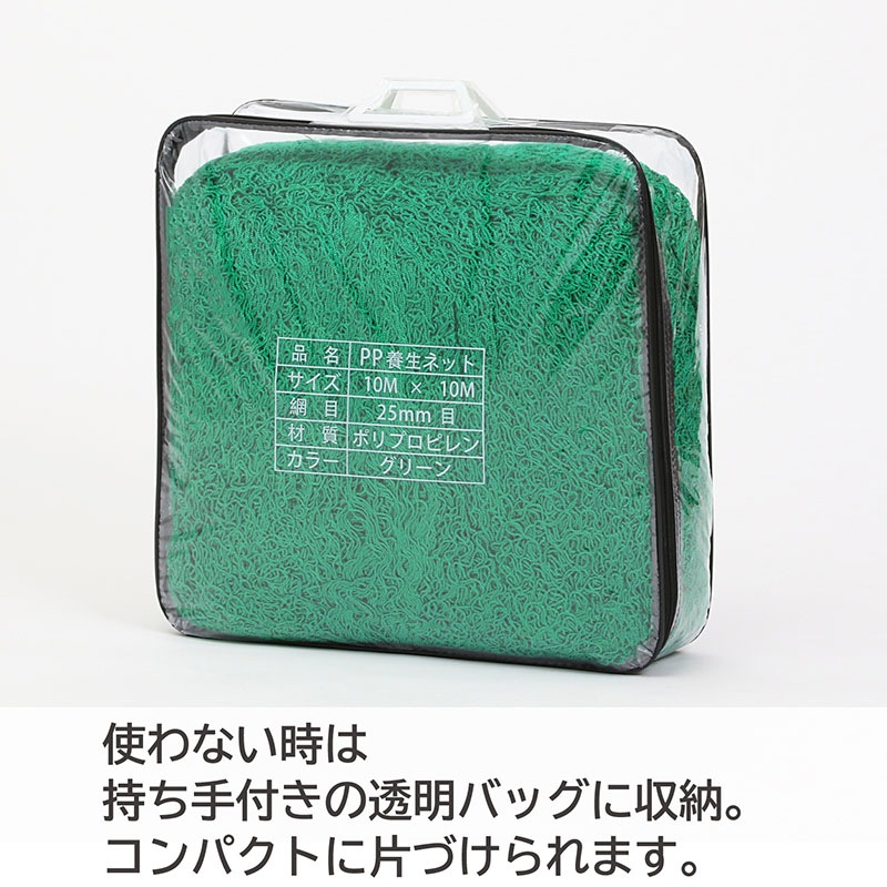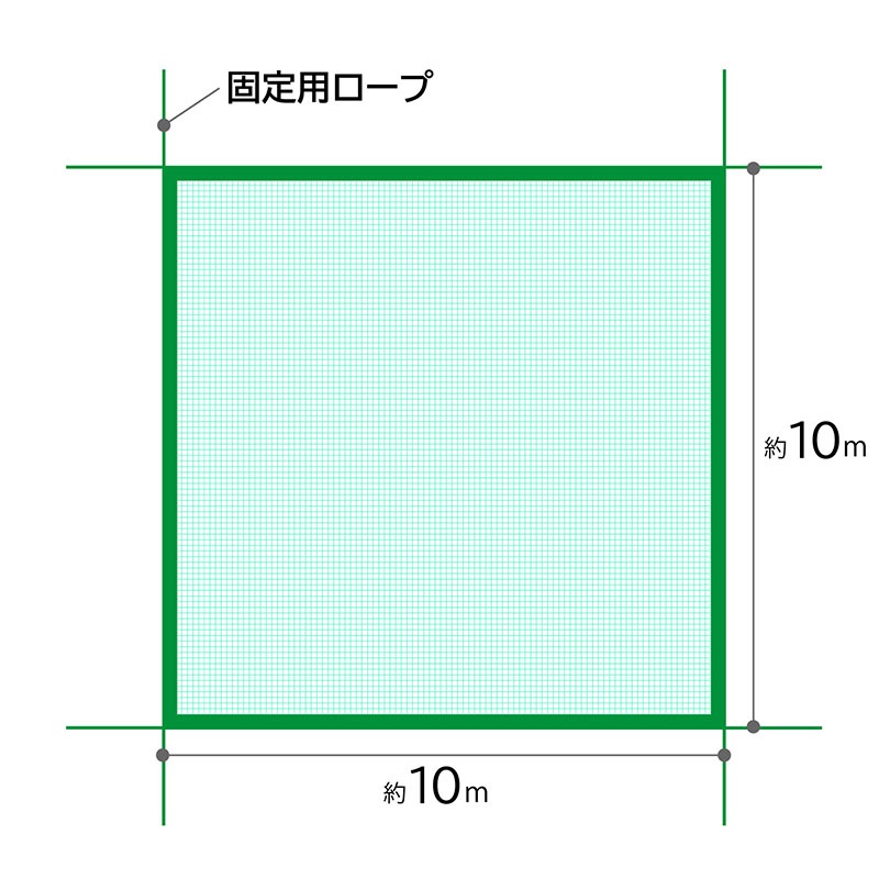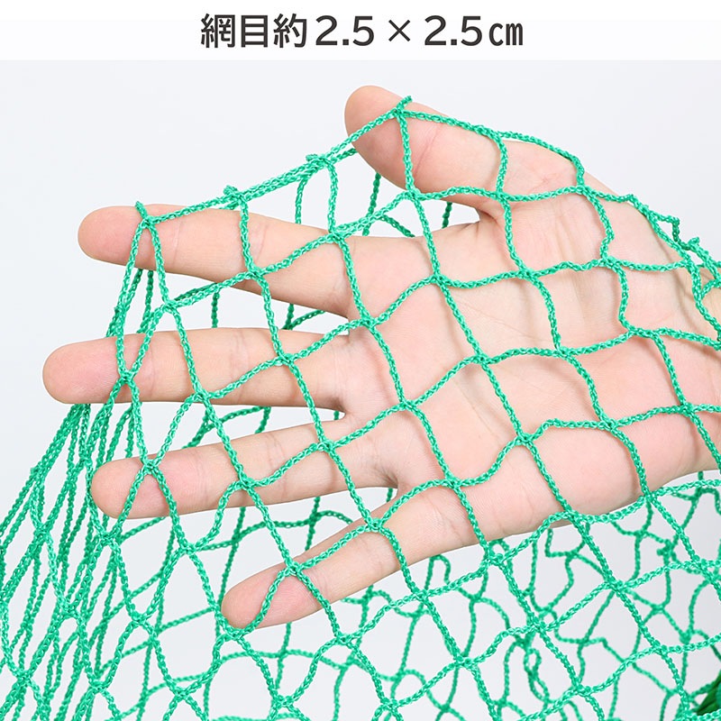 サイズ:約幅10m×奥行10m、網目約2.5×2.5cm、紐約90cm、収納ケース約幅50×奥行16×高さ50cm