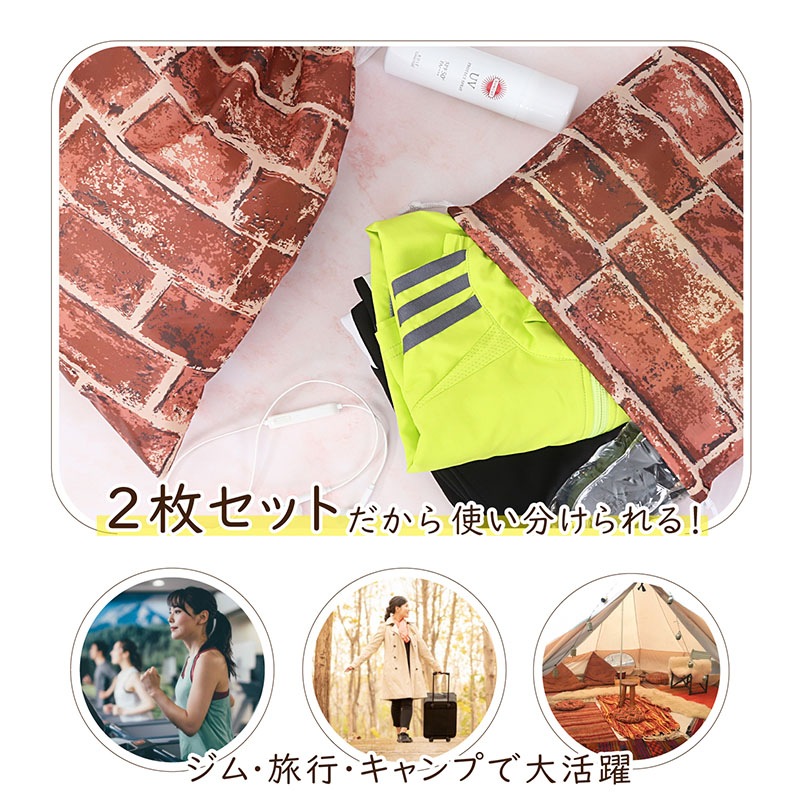 撥水ポリエステル巾着 2枚組 レンガ柄 820-58