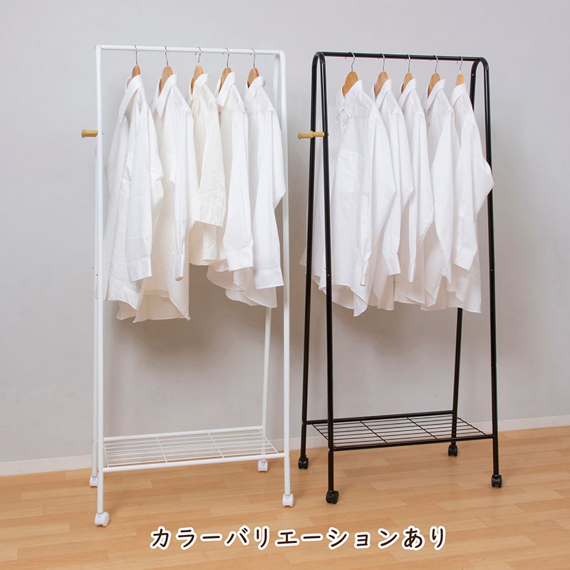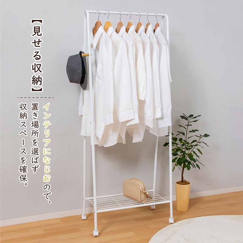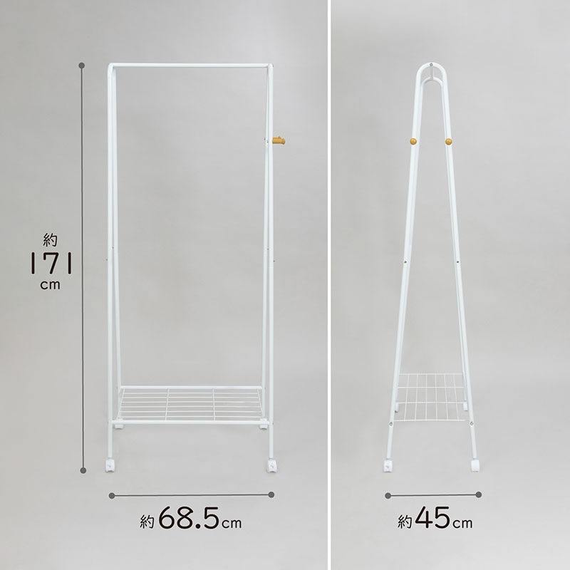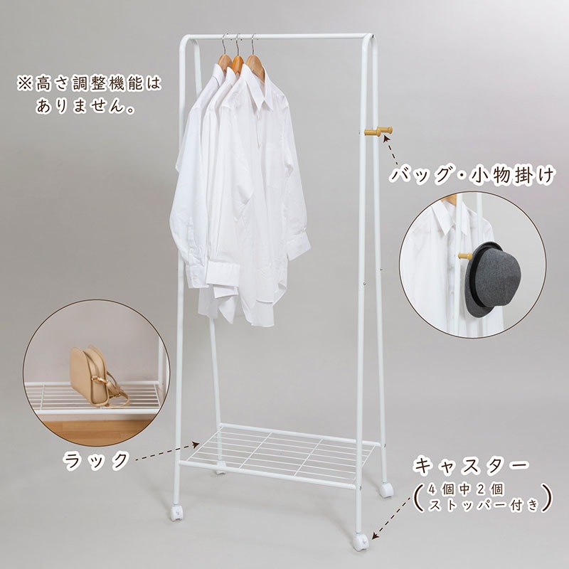 商品名:ラック付ハンガーラック 白 幅68.5cm