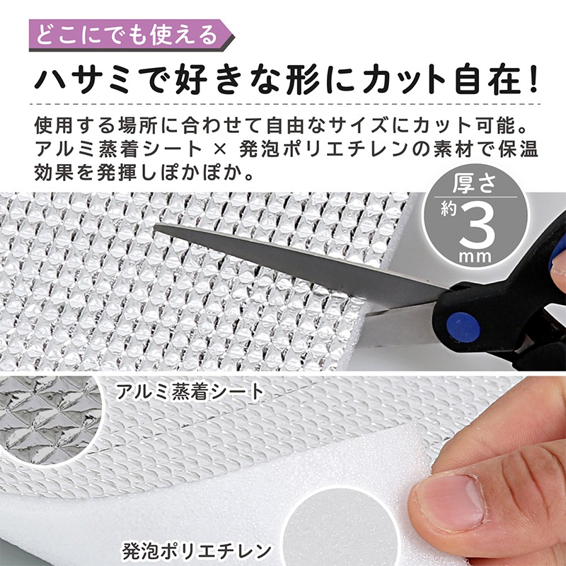 ●アルミ蒸着シート×発泡ポリエチレンで保温効果を発揮しぽかぽか。