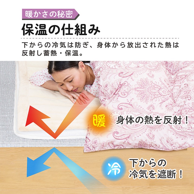 ●布団の下に敷けばアルミが身体から放出された熱を反射し蓄熱・保温。