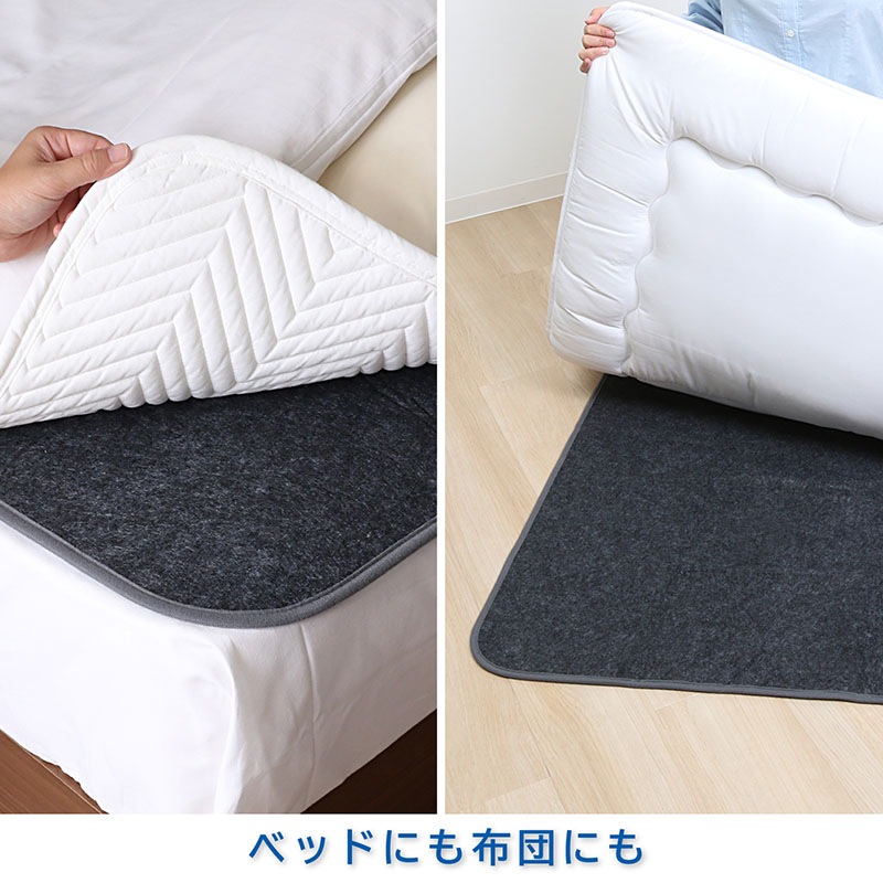 ●敷き布団や敷きパッドの下に敷くだけで寝汗や湿気を吸収。布団が干せないときもサラサラ。