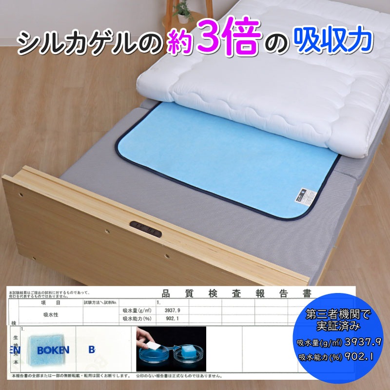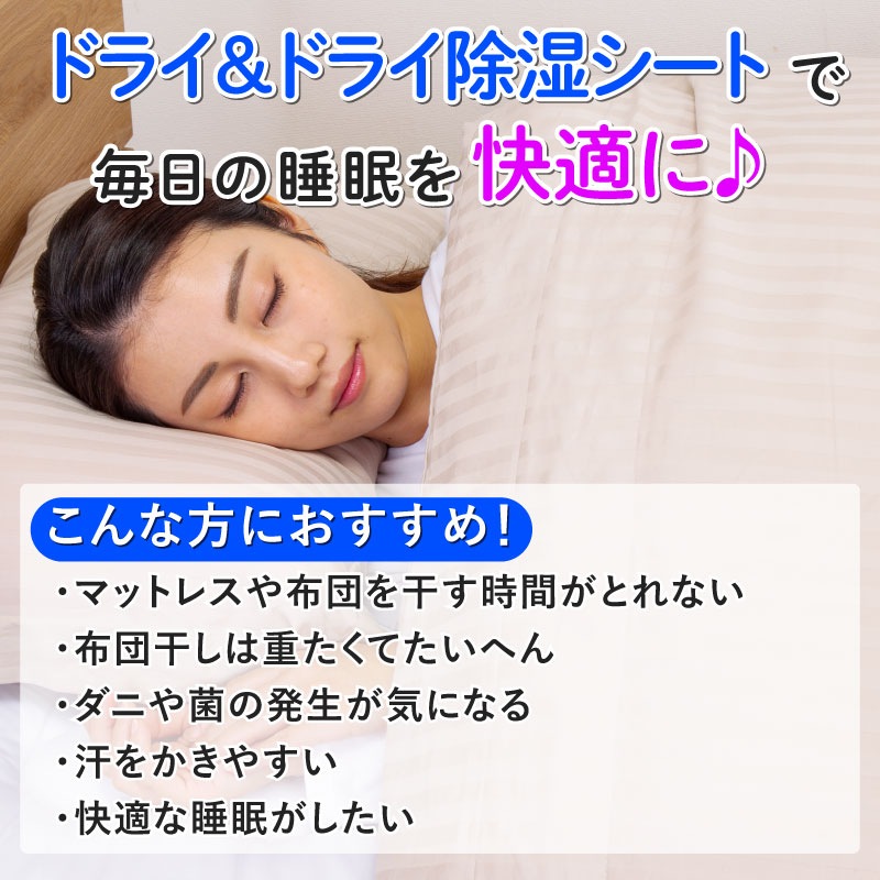 ●敷き布団や敷きパッドの下に敷くだけで寝汗や湿気を吸収。布団が干せないときもサラサラで快適。