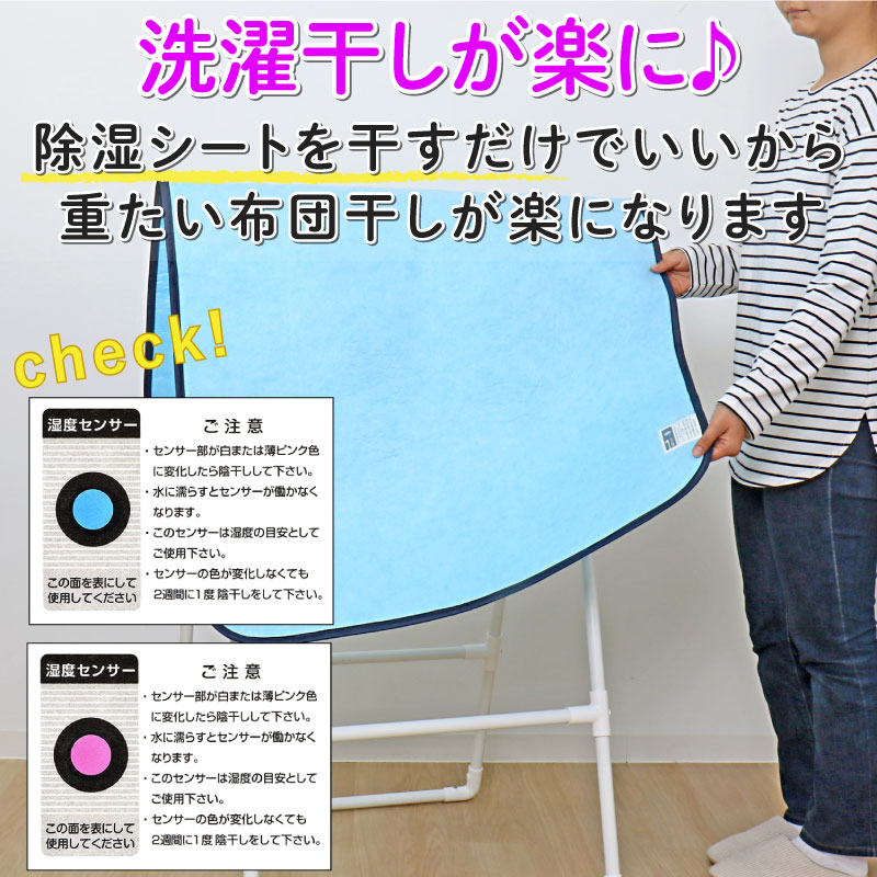 ●敷き布団や敷きパッドの下に敷くだけで寝汗や湿気を吸収。布団が干せないときもサラサラで快適。