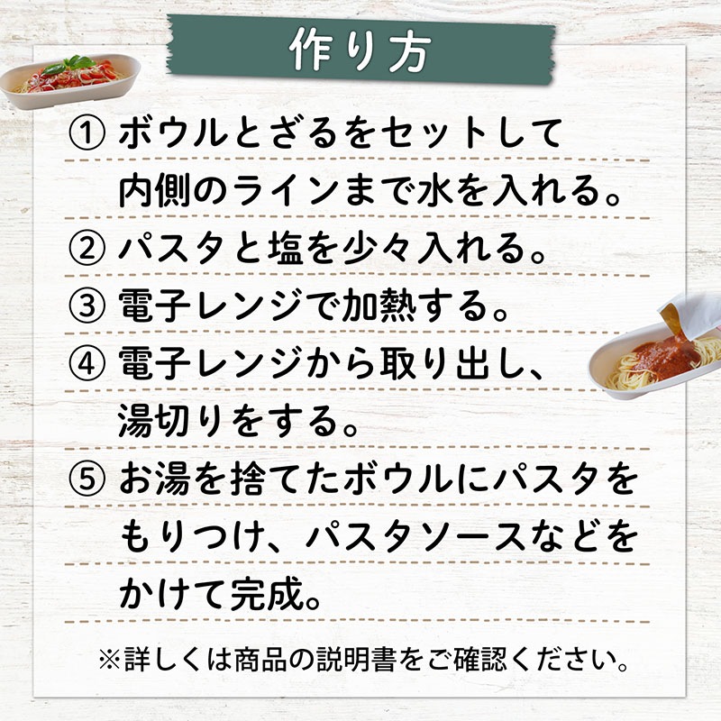 ●早ゆでパスタや細いパスタではご使用いただけません。