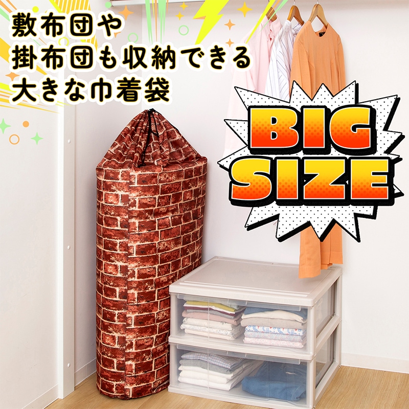 ●シングルサイズの敷き布団も入るビッグサイズの巾着袋。