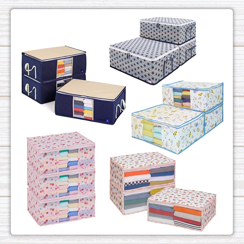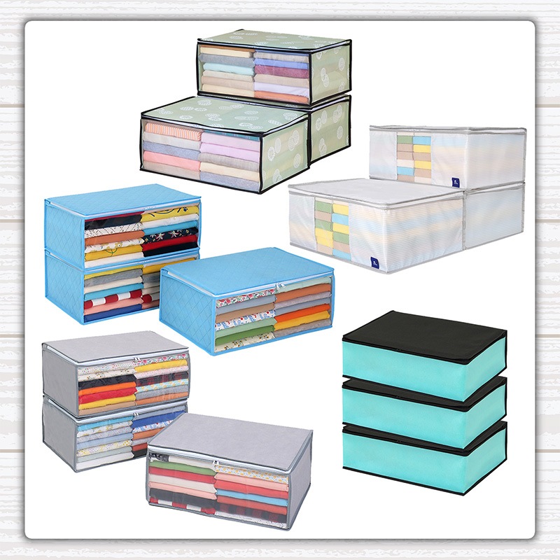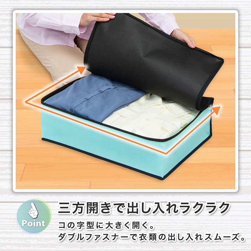 ●オフシーズンの衣類をほこりから守る、通気性の良い不織布製の収納ケース。