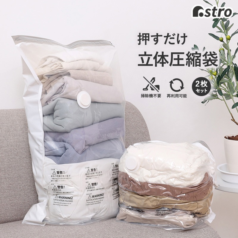 商品名:衣類用 立体圧縮袋 ホワイト 2枚組