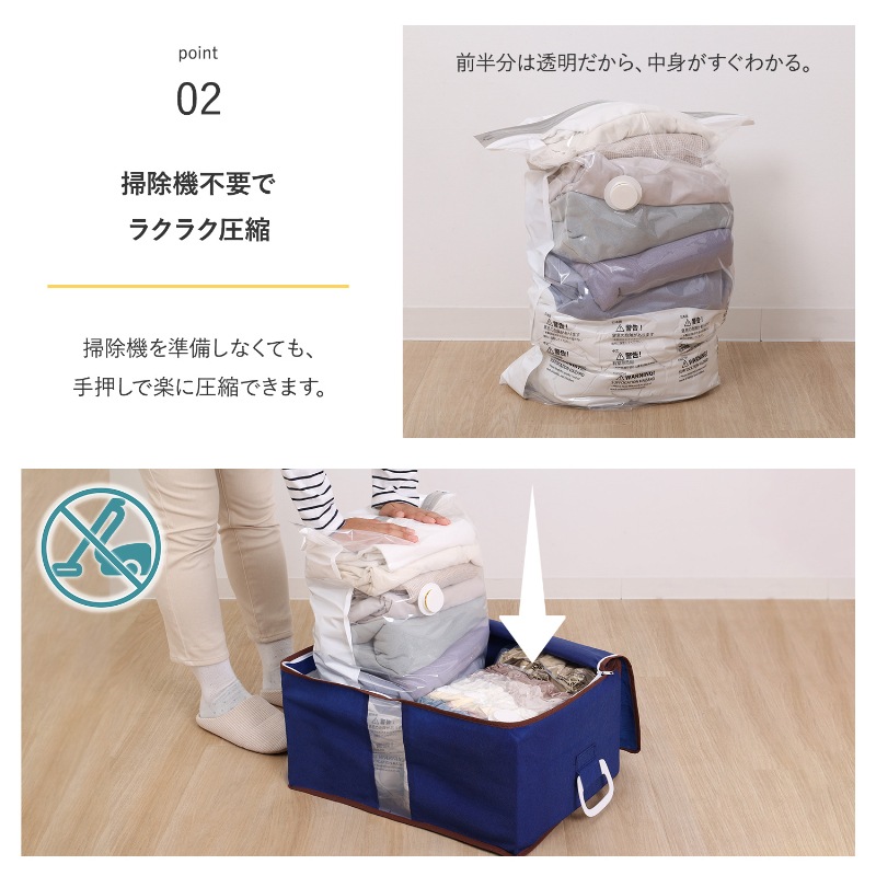カラー:圧縮袋/クリア×ホワイト、収納ボックス/ネイビー