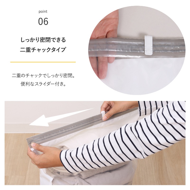 ●圧縮袋は掃除機を使わずに手押しでカンタン圧縮。