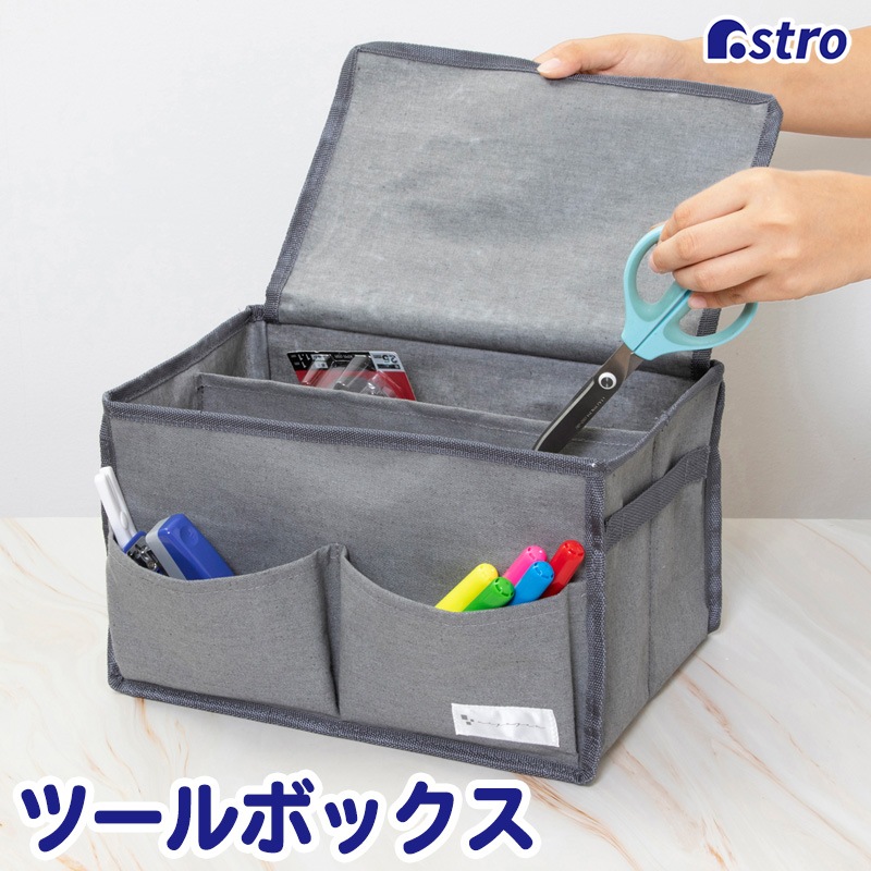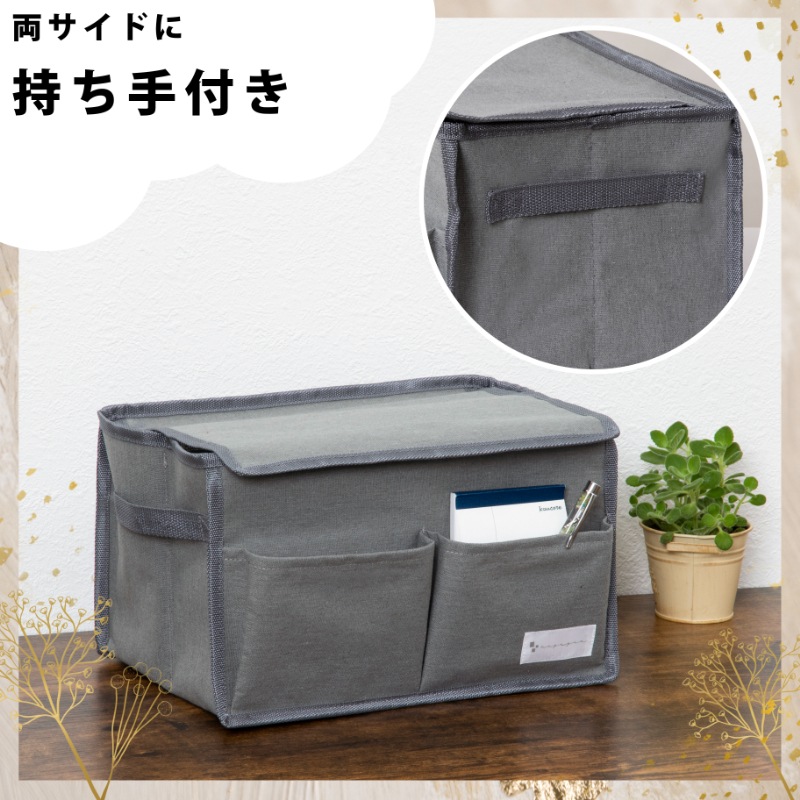 ●持ち手付きで簡単に持ち運べる。フタ付きで収納物をホコリや汚れから保護。