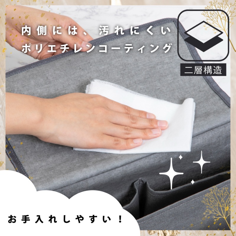 ●内側には撥水加工が施されているので、汚れがつきにくく、お手入れが簡単。